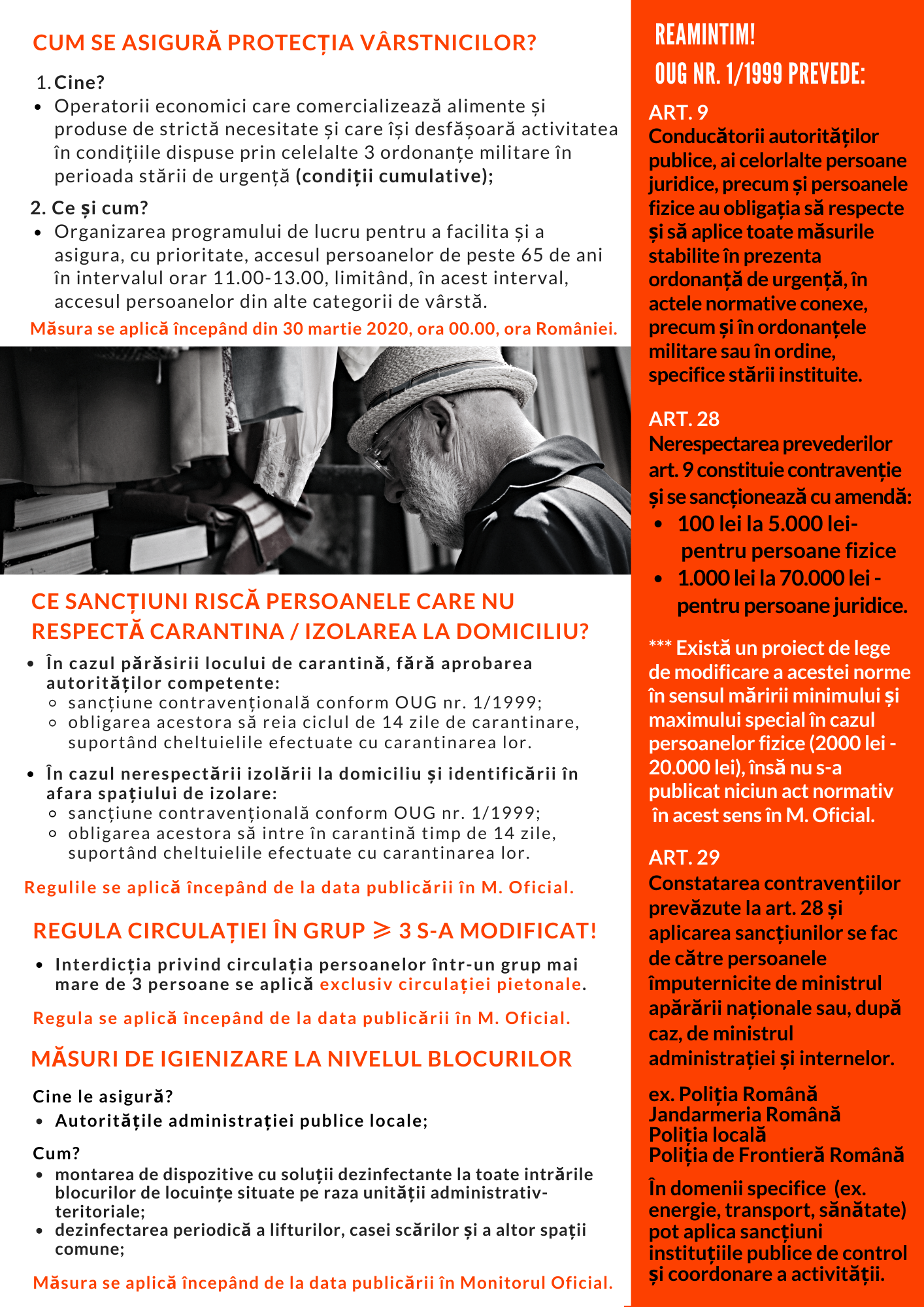În data de 29.03.2020, Ministerul Afacerilor Interne a emis ORDONANȚA MILITARĂ nr. 4 din 29.03.2020 privind măsuri de prevenire a răspândirii COVID-19 (textul integral disponibil pe site-ul stirioficiale.ro).