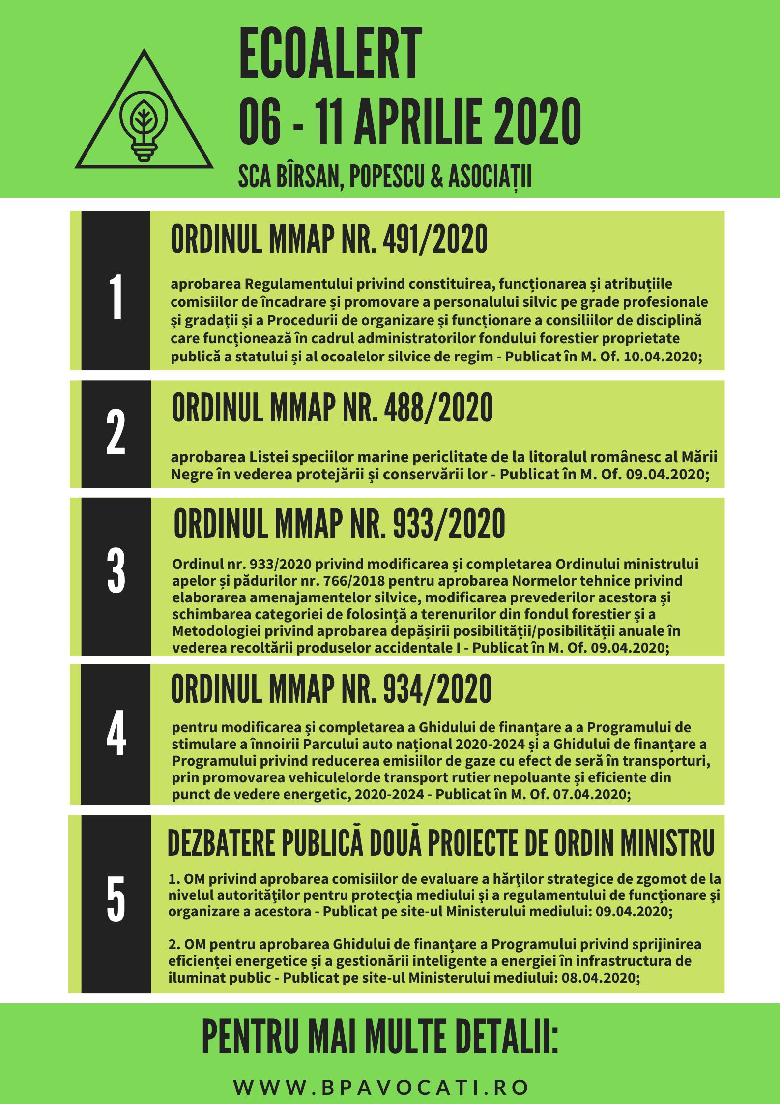 Săptămâna care s-a încheiat a marcat publicarea în Monitorul Oficial a unui număr de șapte ordine de ministru al Mediului, patru selectându-le pentru o scurtă analiză în rubrica noastră. Astfel, descrescător datei de publicare în Monitor, avem următoarele acte normative: